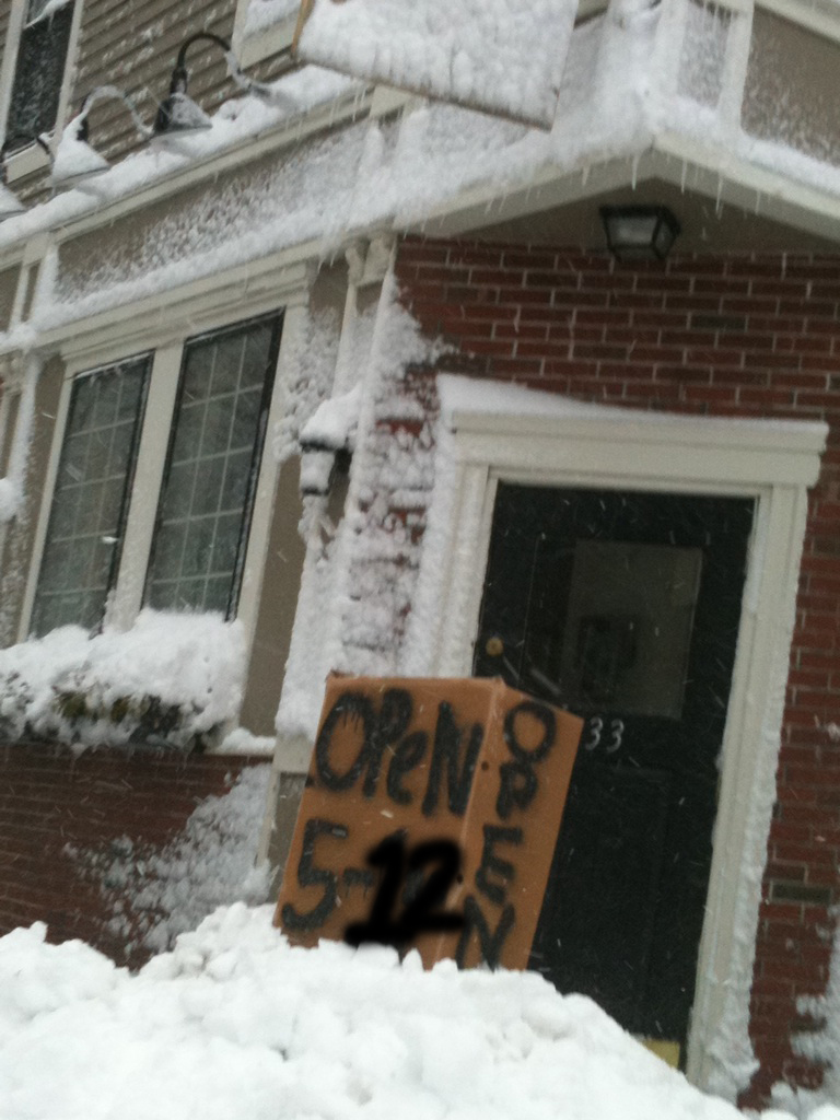 All that talk of long standing traditions and staying open. . . Talk about a conspiracy – the government is DEFINITELY working against us. First they made 18-36″ of snow come down. Then they shut down the T. Then the cab companies closed. The world is working against us and we’re giving in to it. Hungry Mother will be CLOSED tonight. First time ever. We will re-open 5pm tomorrow – Saturday … so hang in and watch a movie tonight – and come visit us tomorrow. And Sunday. And next Tuesday. And Wednesday, Thursday, Friday, Saturday, Sunday…………stay safe and warm . see you soon. xoxo .hm.